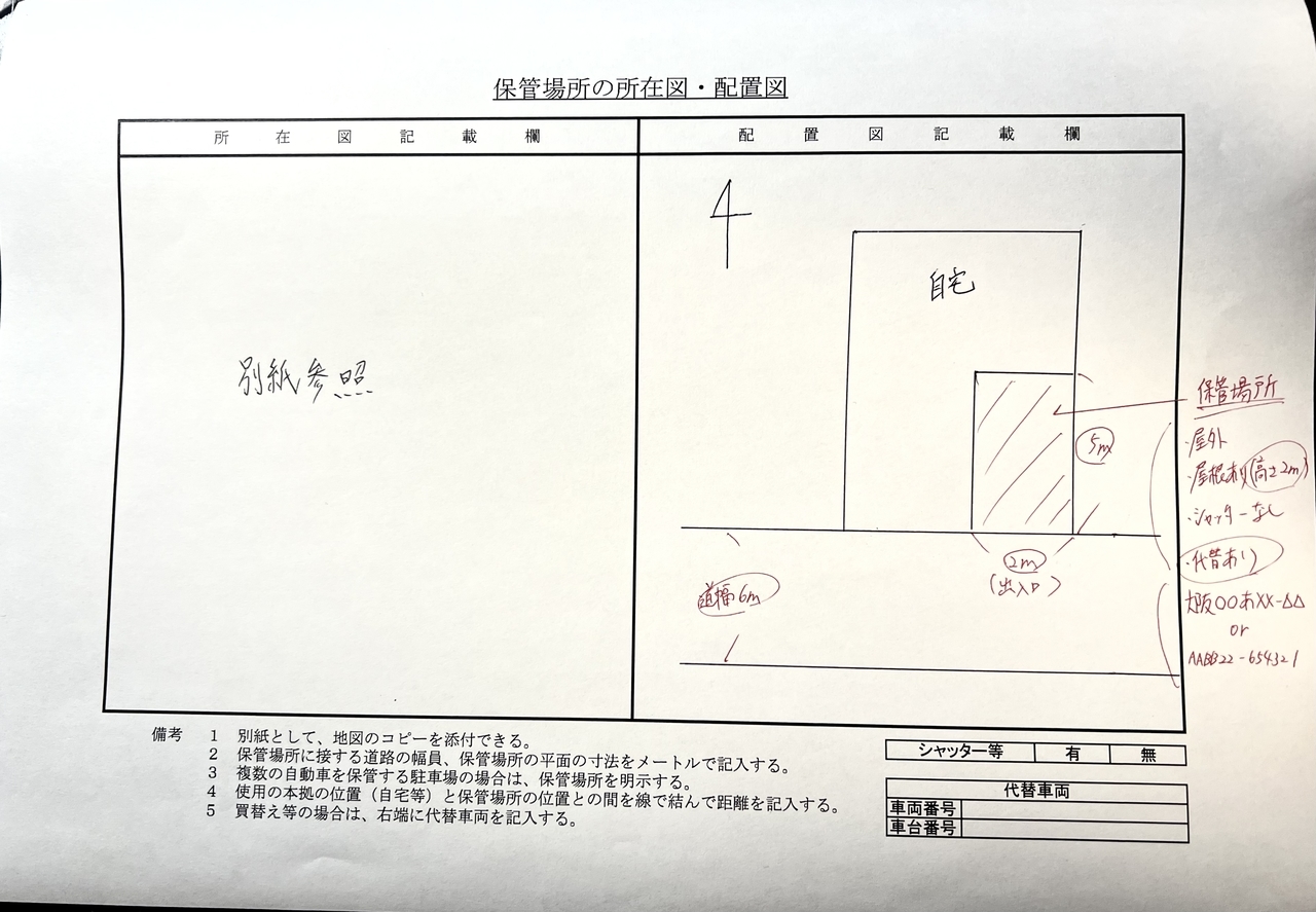 ③自認書または保管場所使用承諾書(保管場所とする土地の使用権限書)