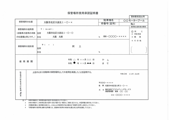 ③自認書または保管場所使用承諾書(保管場所とする土地の使用権限書)